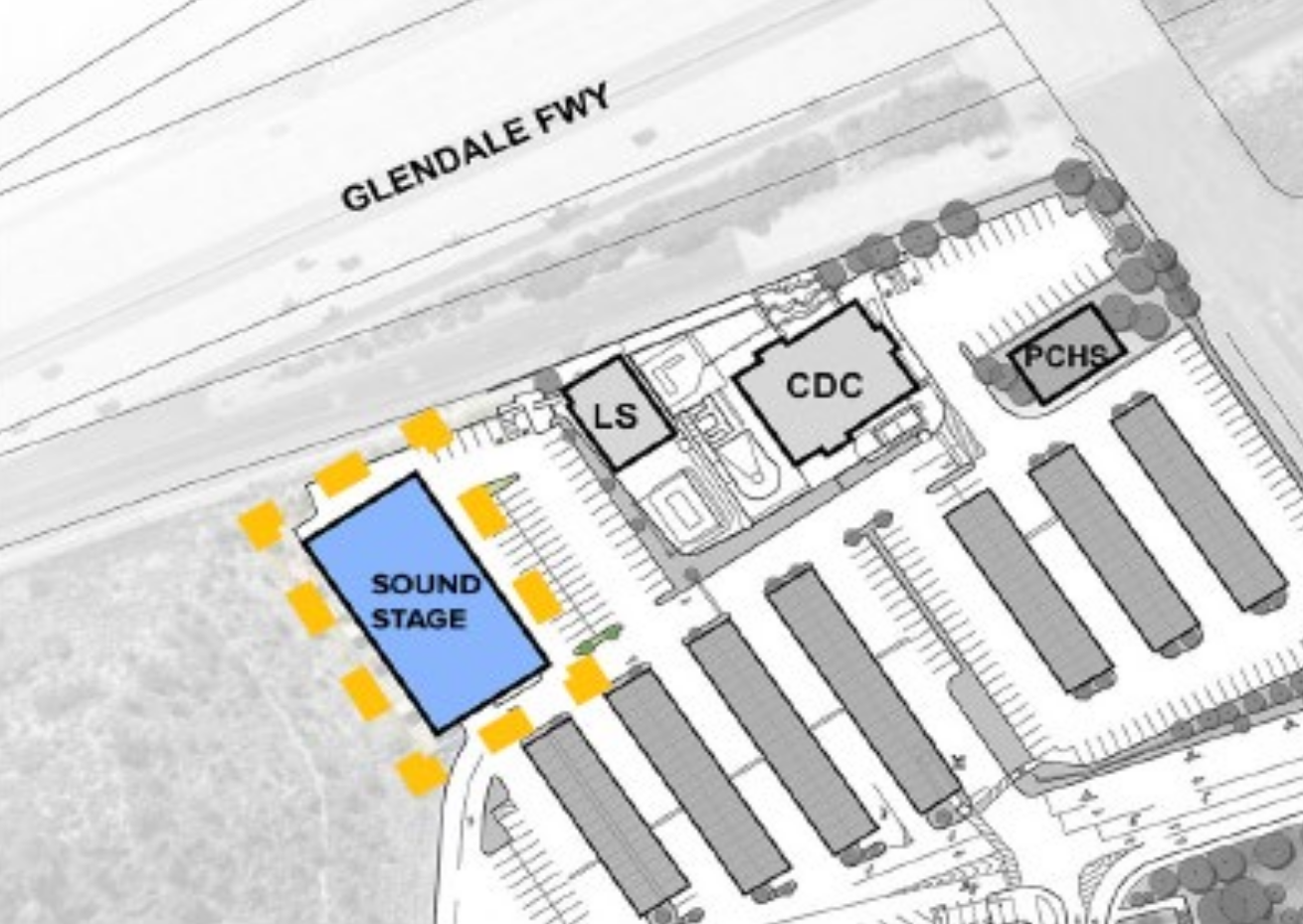 The construction of the IBCC will necessitate the demolition of the existing Sierra Nevada building. To avoid the need for swing space and to further enhance the Arts program, a new sound stage facility will be constructed in Lot B near the Child Development Center and Life Skills Building.